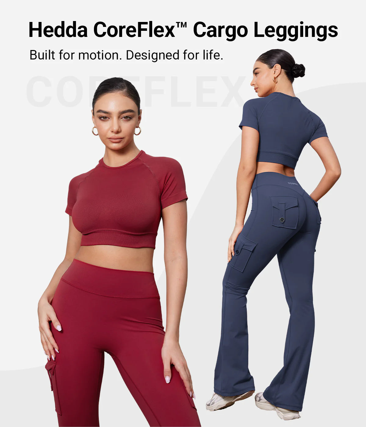 Elevate your look with the Hedda Flared Leggings. Made from durable, non-see-through four-way stretch fabric, they feature hidden scrunch for natural lift, and a flattering flared leg. Practical pockets and a cargo-inspired design make them perfect for workouts or casual outings!